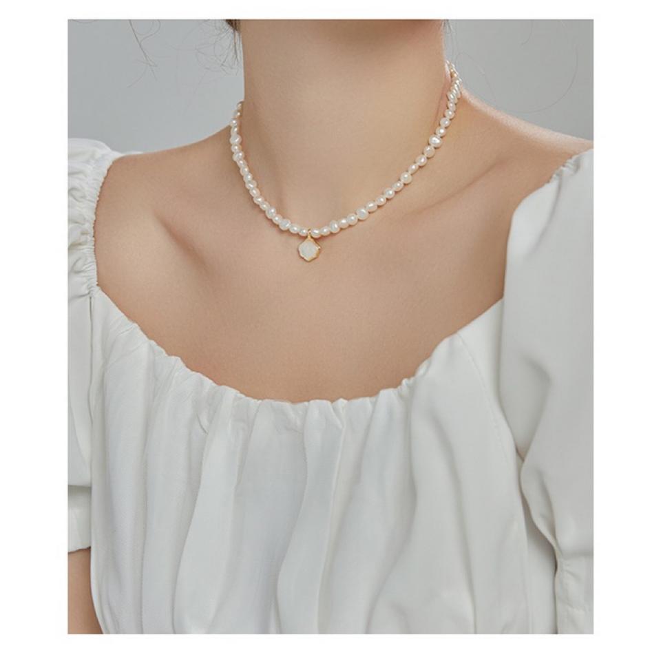 Collar Versátil de Estilo Francés de Lujo, con Patrón Geométrico Moderno, Cadena para Clavícula, Perla Barroca Natural, Collar Elegante y Duradero