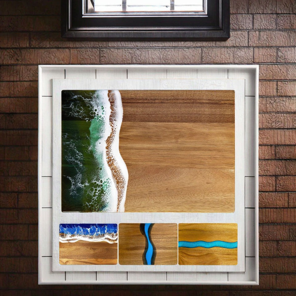 Tabla de Quesos y Charcutería de Madera Artesanal con Patrón de Onda Verde Versátil, Tabla de Preparación de Comidas para Cocina, Tabla de Cortar de 1.3 cm