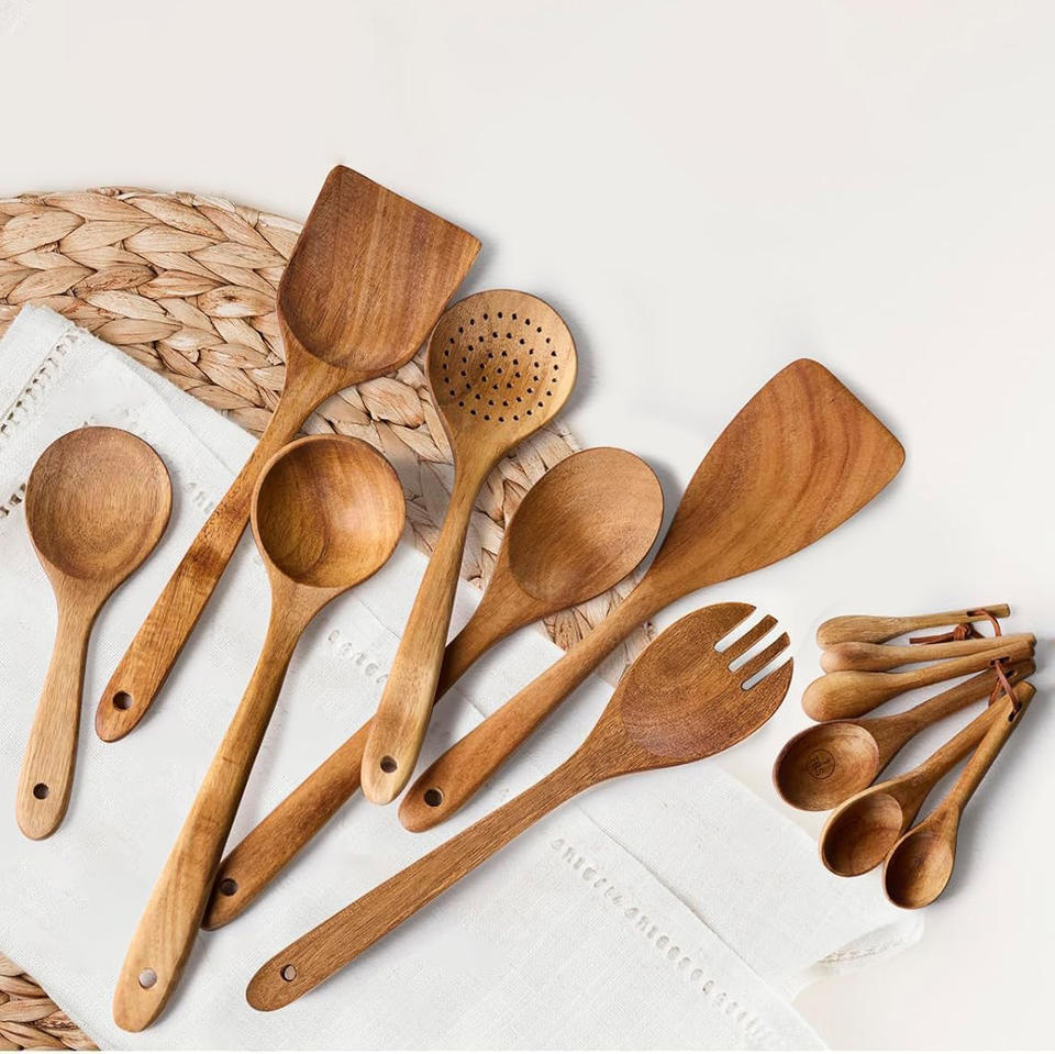 Utensilios de Cocina Versátiles de Madera, Juego de Utensilios de Cocina Reutilizables, Accesorios de Cocina de Madera