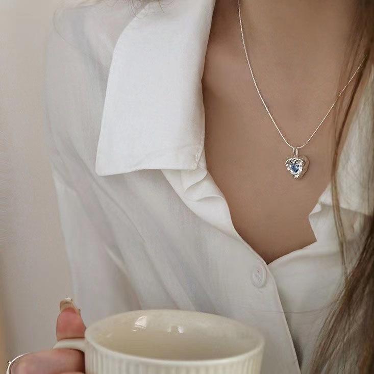 Collar de amor con incrustaciones de martillo Irregular versátil Cadena de clavícula de corazón de lava de gama alta con sentido de diseño exquisito para mujer