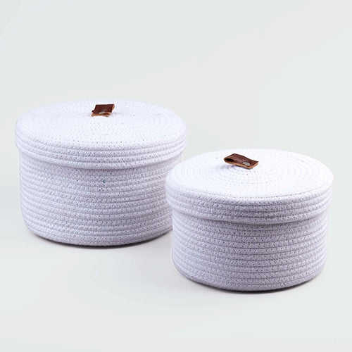 Cesta de Almacenamiento Redonda de Yute y Mimbre Blanca Versátil de 2 Piezas para Sala de Estar