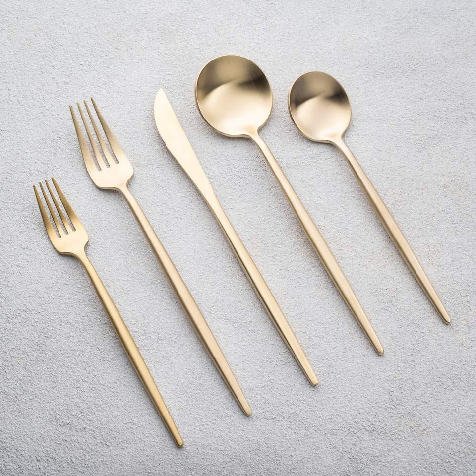 Juego de cubiertos metálicos versátiles, perfecto para desayunos informales, cenas formales y celebraciones al aire libre
