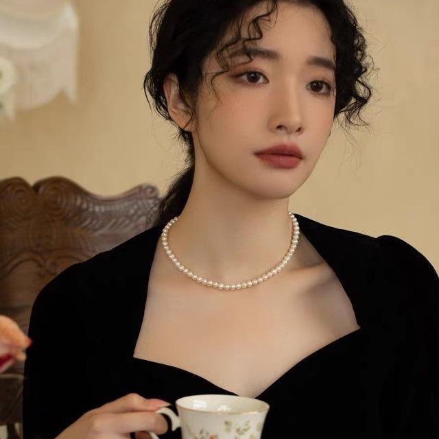 Collar de Perlas de Agua Dulce Natural Versátil para Mujer, Diseño de Nicho de Lujo Ligero con Temperamento Otoñal e Invernal
