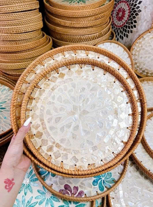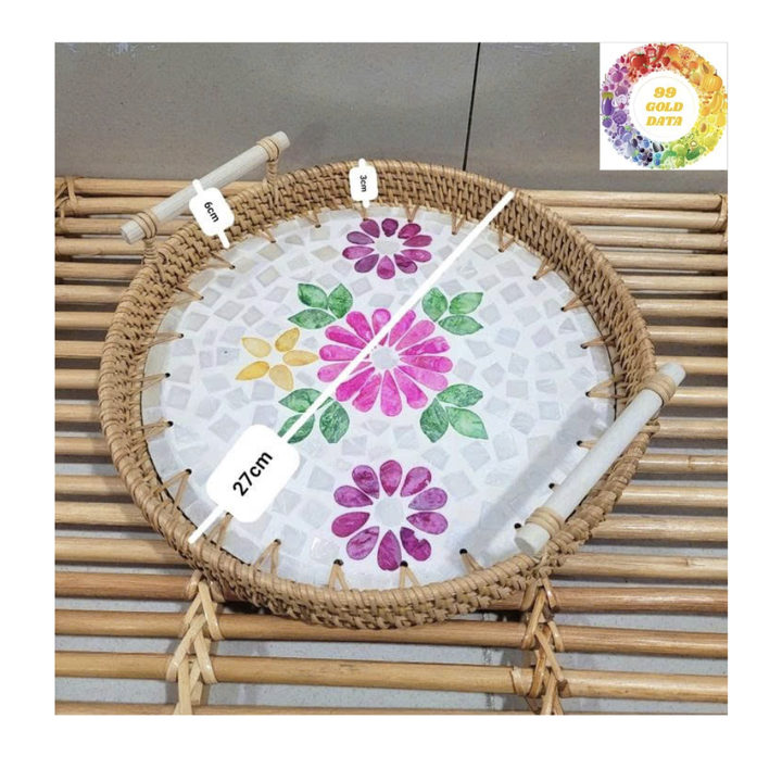 Bandeja tejida de ratán versátil redonda ovalada rectangular para aperitivos de pan de frutas