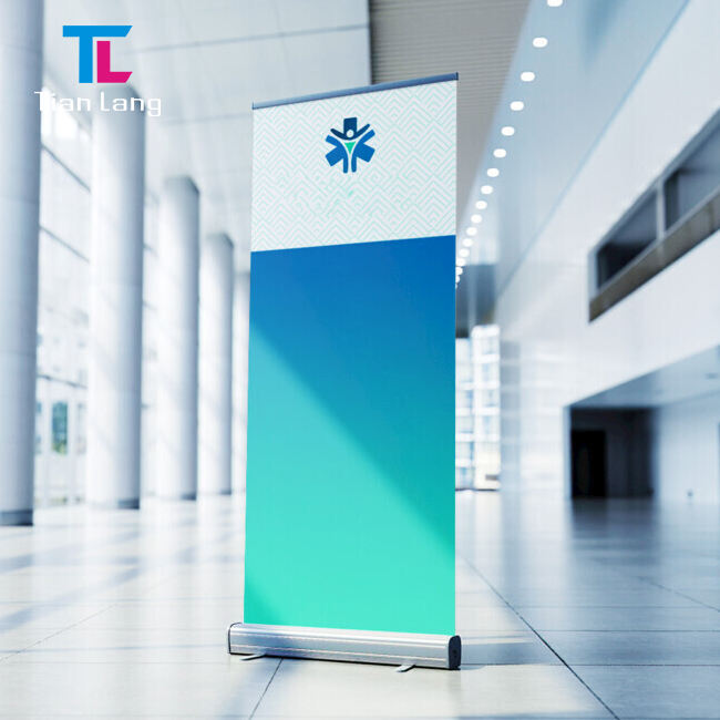 Diseño de póster de puerta de cartelera vertical y producción de estante de publicidad Yilabao Display Estante de exhibición plegable telescópico personalizado