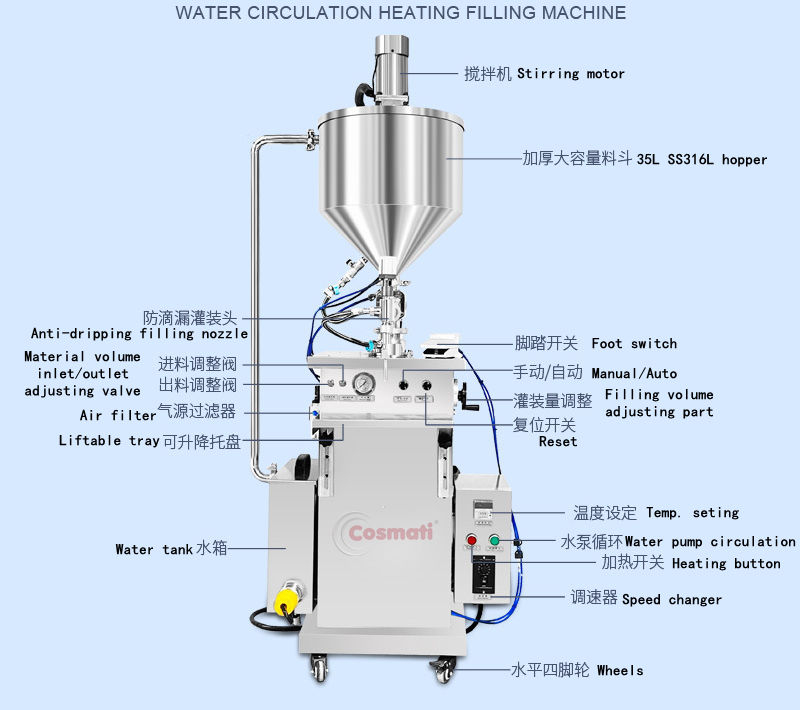 Máquina de Llenado Vertical con Calentador para Cremas Viscosas, Lociones y Geles