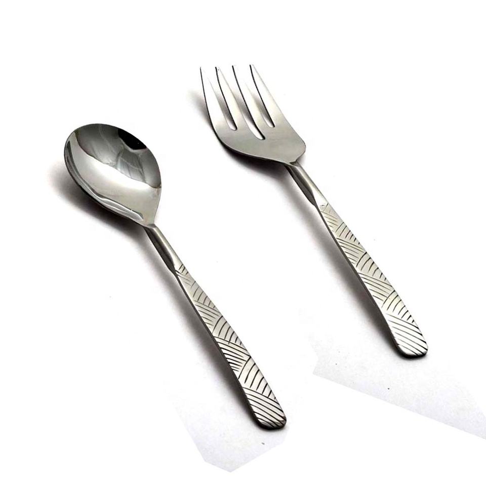 Mango de diseño de forro vertical Juego de servicio de ensalada seguro para alimentos de metal de acero inoxidable Cubiertos de plata