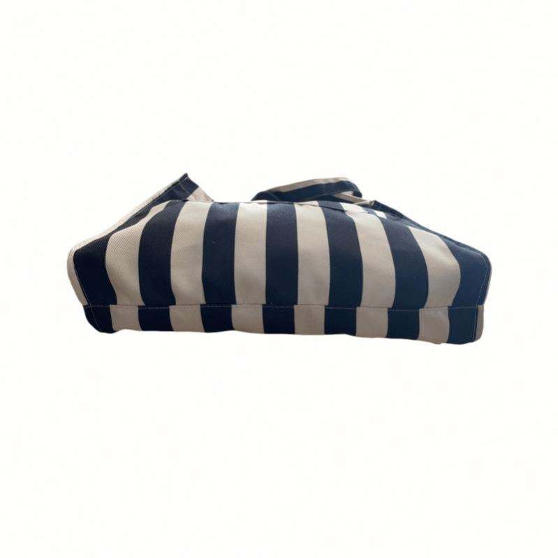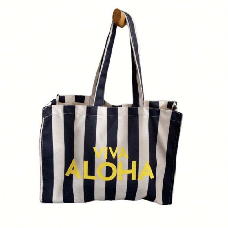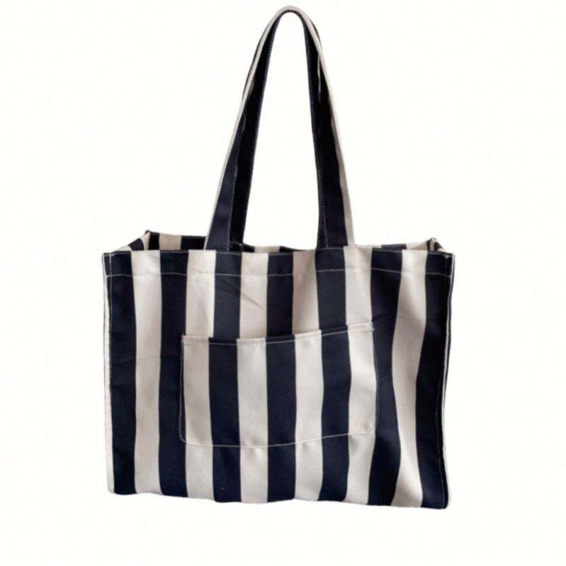 Bolsa de Compras de Lona de Algodón Reciclado Natural con Rayas Verticales, Personalizada, con Múltiples Bolsillos