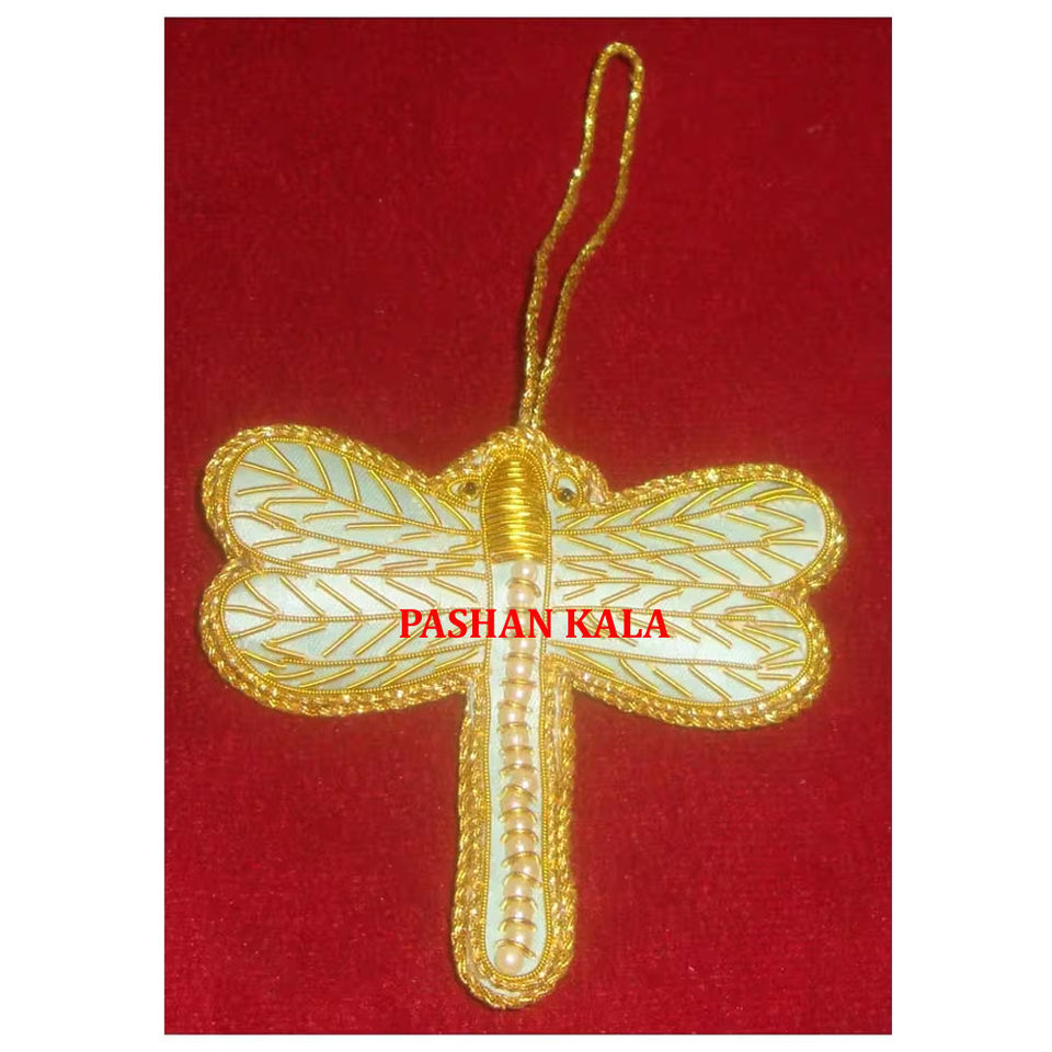 Adornos colgantes de tela de Color verde marino muy exclusivos, forma de mosca de mantequilla, bordado Zari y artículo decorativo de árbol con cuentas
