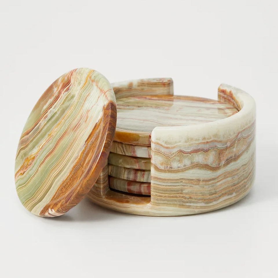 Juego de Posavasos de Piedra Natural, Mármol y Ónix - Diseño Moderno para Cocina, Construcción de Losa Grande, Duraderos y Ecológicos, Posavasos de Alta Calidad