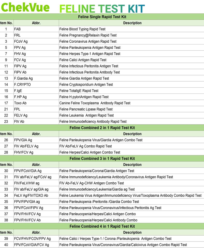 Product Name Abbr.:FPV FCV FHV FCOV FIV FELV FIPV GIA combo test kit