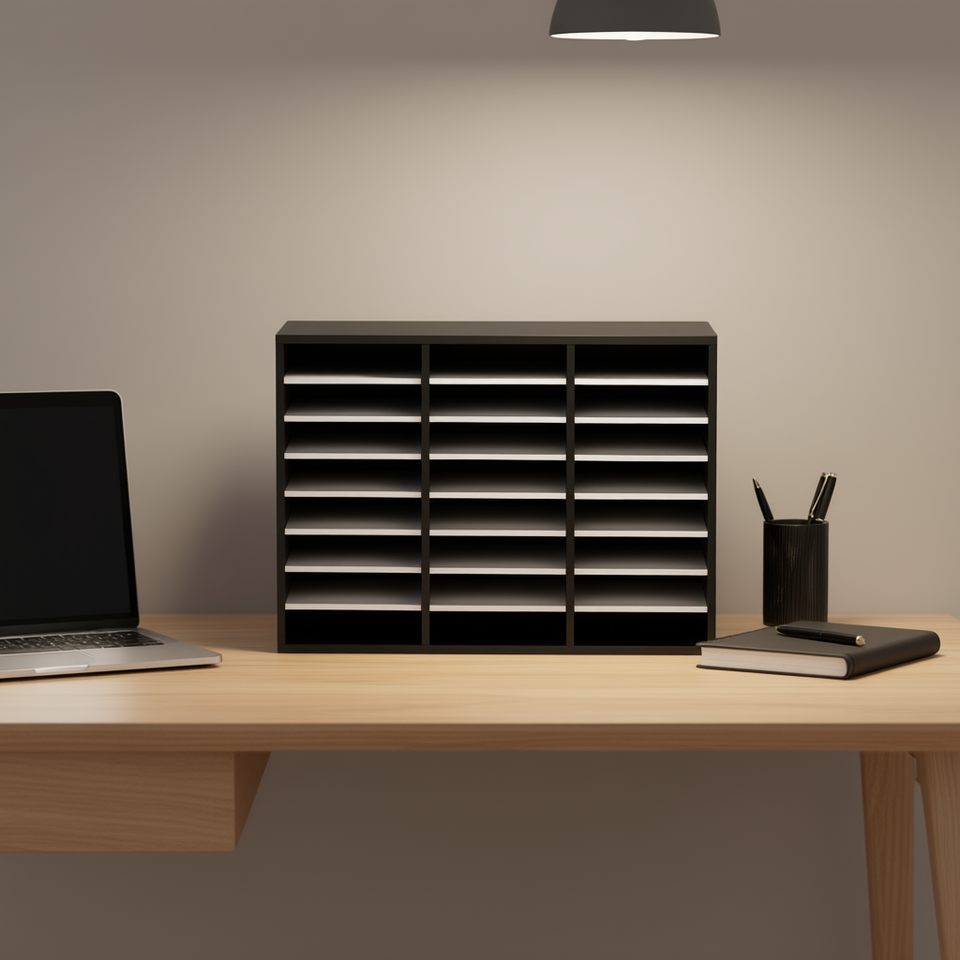 Organizador de Escritorio Vevor con 27 Compartimentos para Revistas, de Fibra de Densidad Media, Negro y Blanco, para Oficina y Hogar, Almacenamiento de Literatura y Correo