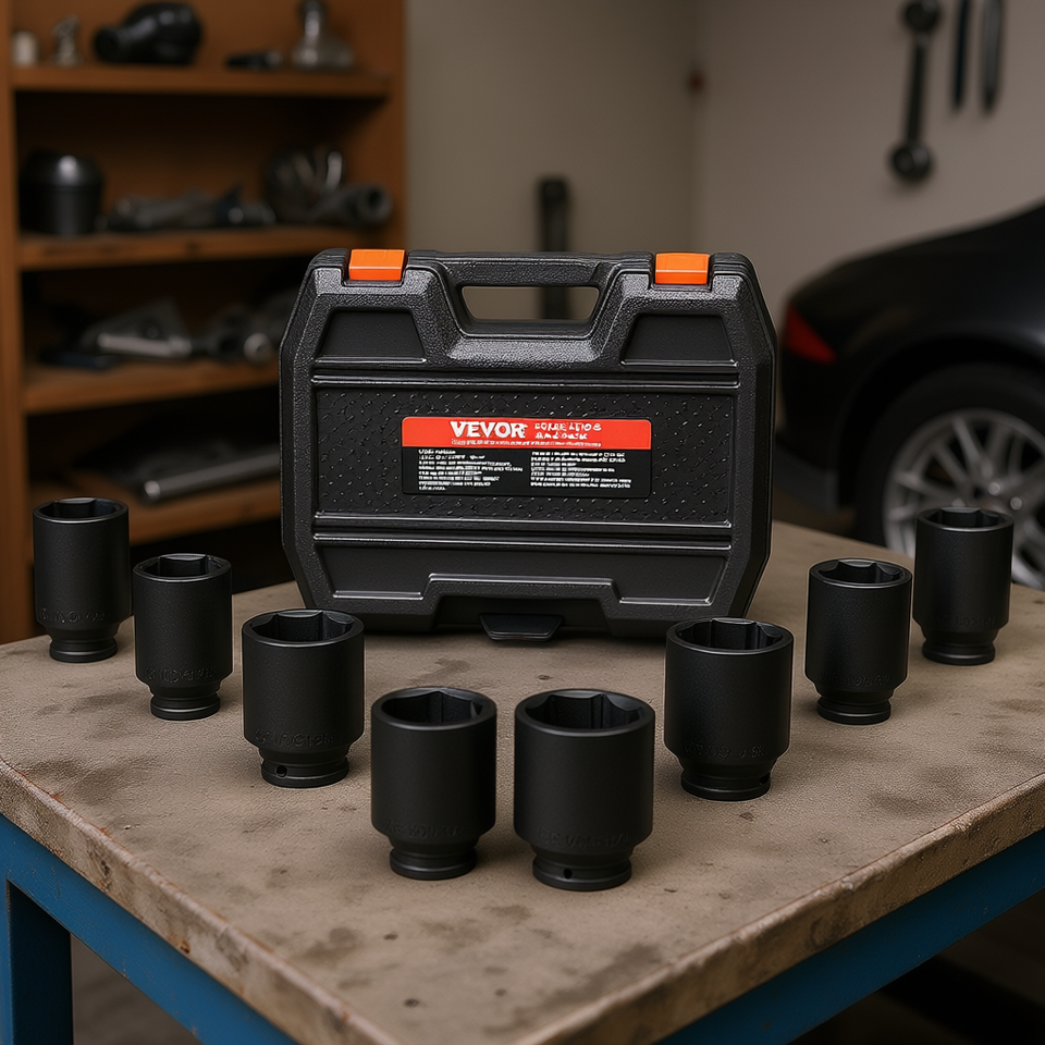 Juego de Llaves de Impacto Vevor de 3/4 Pulgadas de Profundidad, 8 Piezas, SAE Cr-V, Cromadas, Herramienta Manual, Llave Cuadrada, Grado Industrial