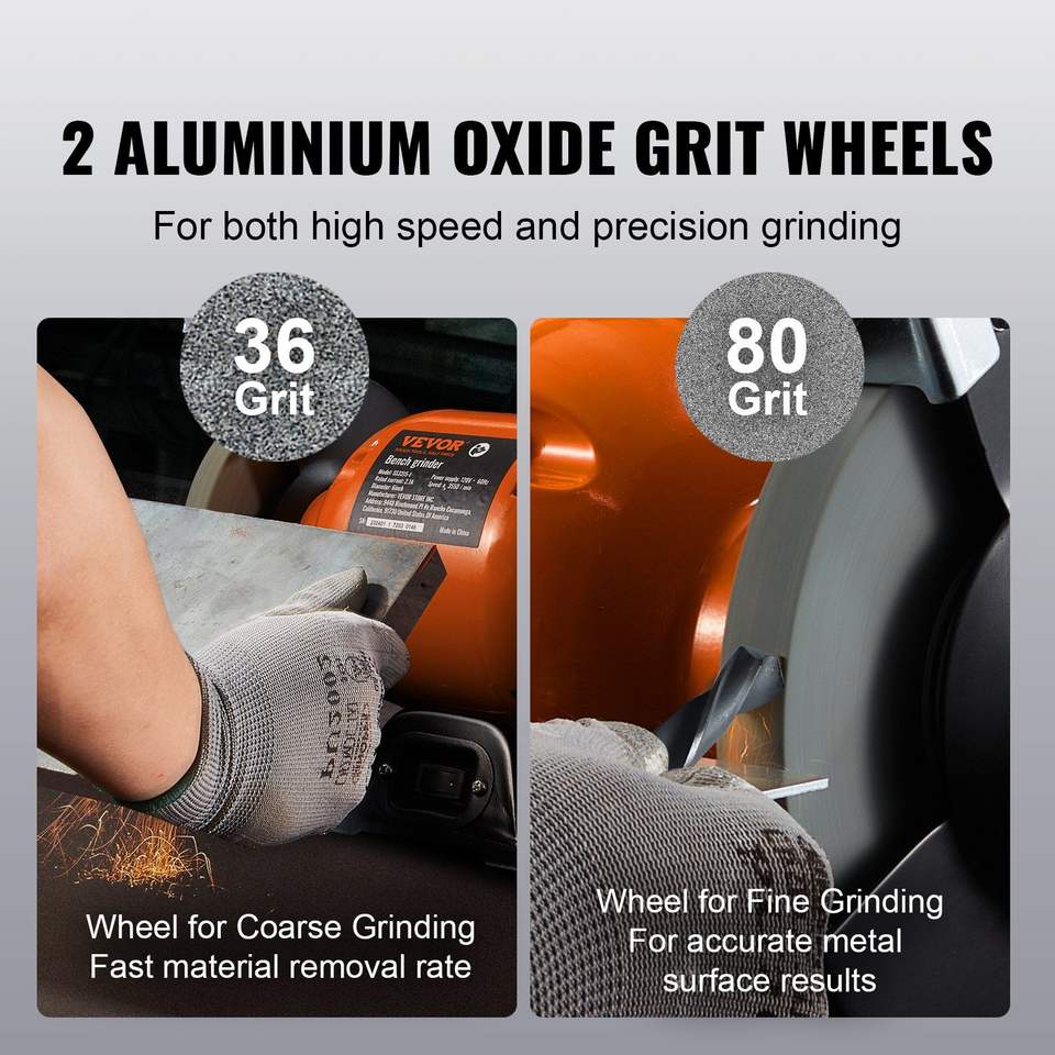 Amoladora de Banco Vevor de 6 Pulgadas, Motor de 2.1A, 3550 RPM, Fuente de Alimentación Eléctrica, Uso General
