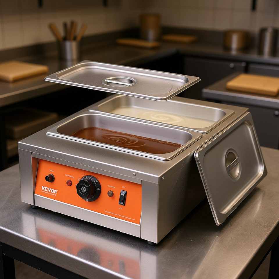 D0100HADYHG Máquina Templadora de Chocolate Independiente de 2 Tanques 86-185F, Equipo Eléctrico de Panadería con Perilla de Acero Inoxidable