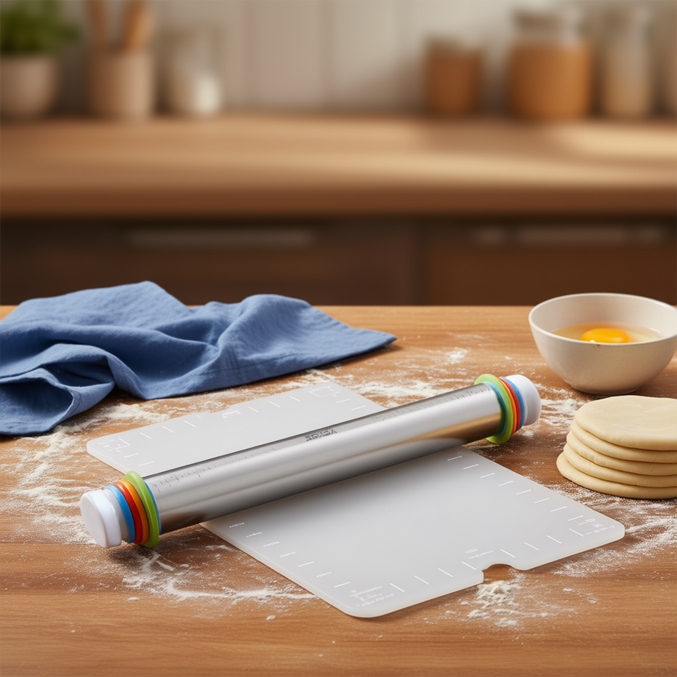Rodillo de amasar ajustable de acero inoxidable Vevor con anillos de grosor ajustables, tabla de repostería y tapete para hornear para amasar y hornear.