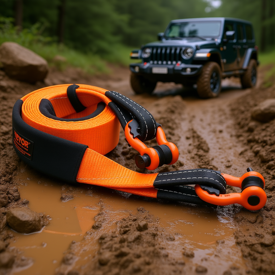 Correa de Remolque de 3 Pulgadas x 20 Pies, 36000 Libras de Resistencia a la Rotura, Correa de Recuperación para Cabrestante, Naranja, Poliéster, Protector de Árboles