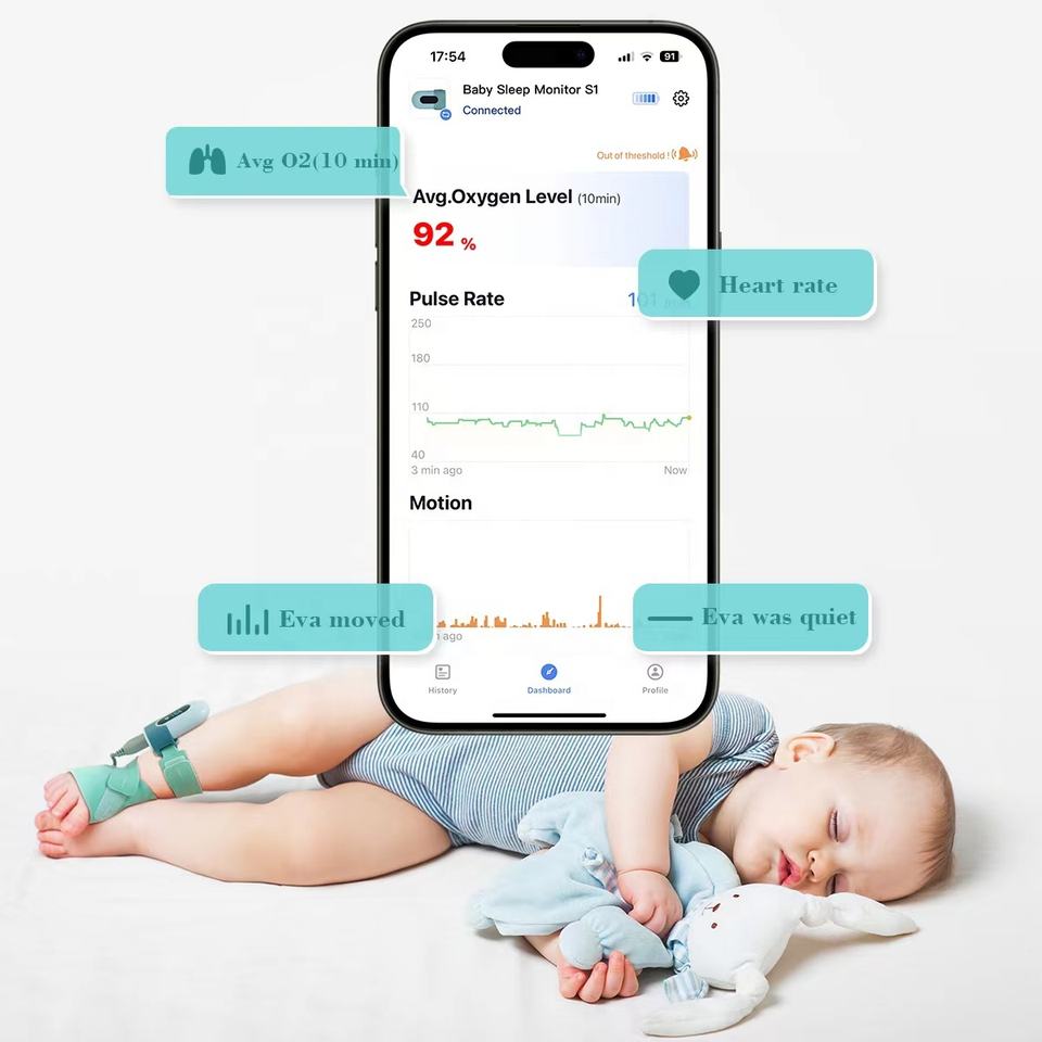 Monitor de Pie Portátil Viatom BabyO2 con Bluetooth, Monitor de Sueño para Bebés, Oxímetro de Pulso Pediátrico
