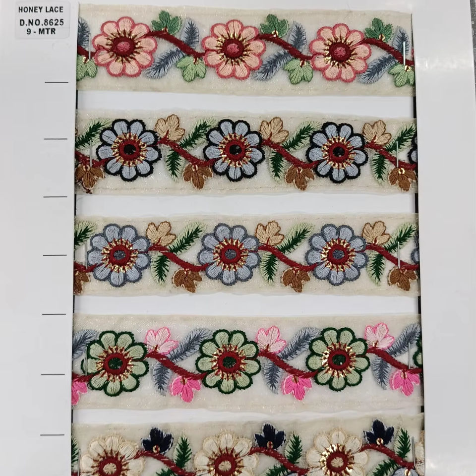 Encaje bordado floral colorido vibrante con diseño intrincado para moda, artesanía y decoración del hogar