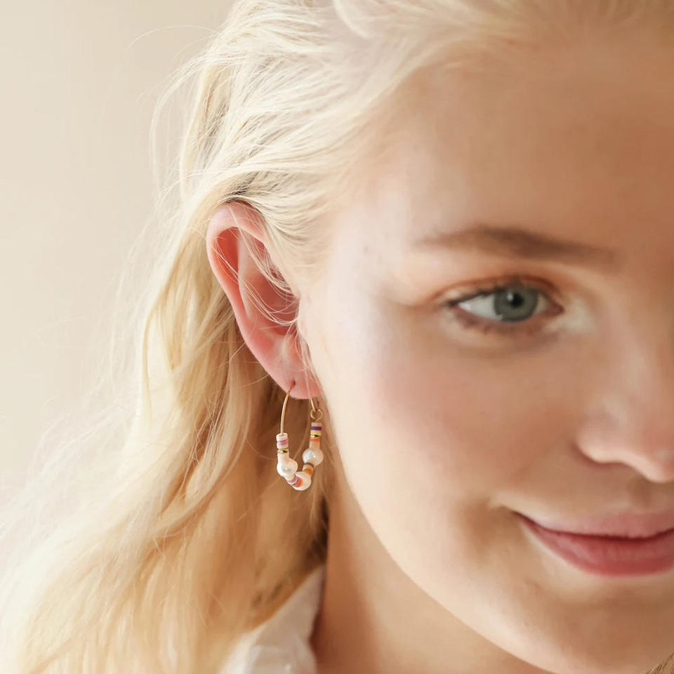 Pendientes de aro de perlas de arcilla polimérica multicolor vibrante, joyería artesanal para regalos de Navidad, San Valentín y boda