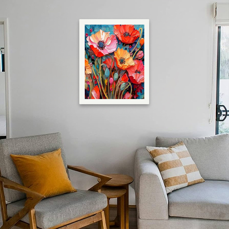 Kit de Pintura por Números de Amapolas Vibrantes para Adultos - Lienzo Ecológico DIY Amapola Colorida 16x20 Pulgadas Sin Marco Regalos de Arte