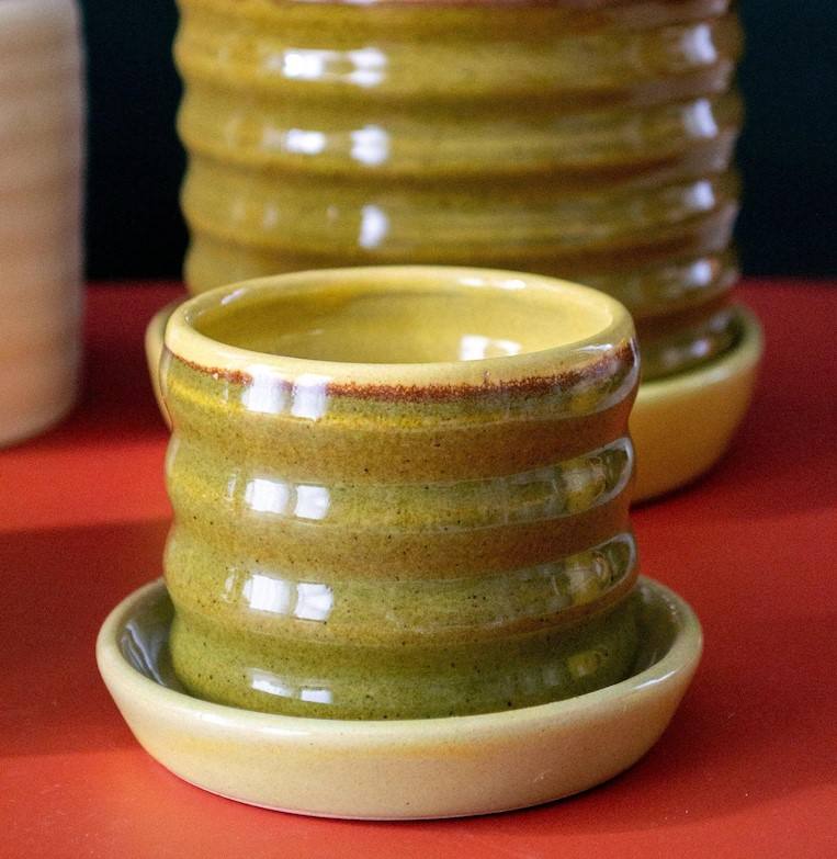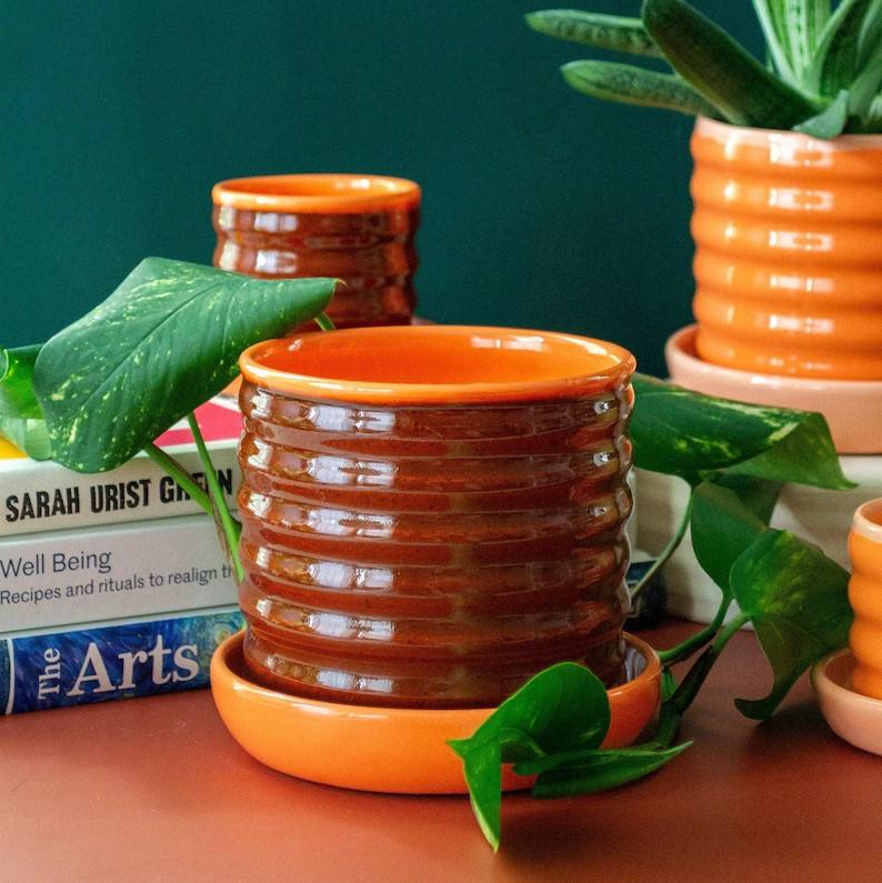 Juego de Macetas de Cerámica Acanaladas Vibrantes con Acabado Brillante, Duraderas, Decorativas para Interiores