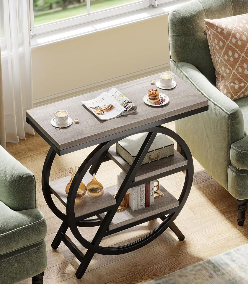 Mesa Auxiliar Rectangular Victoria Luxe de Diseño Clásico y Duradero, Hierro y Madera de Acacia con Acabado Negro Mate - Mejora la Estética de tu Hogar u Oficina
