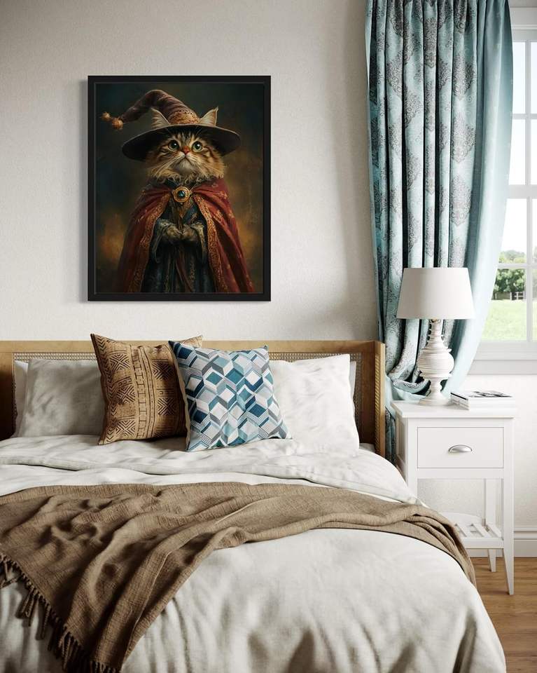 Pintura de retrato de Humor personalizado de gato victoriano y arte de pared, arte de pared, decoración del hogar, ilustraciones felinas, regalo para amantes de las mascotas, fábrica al por mayor