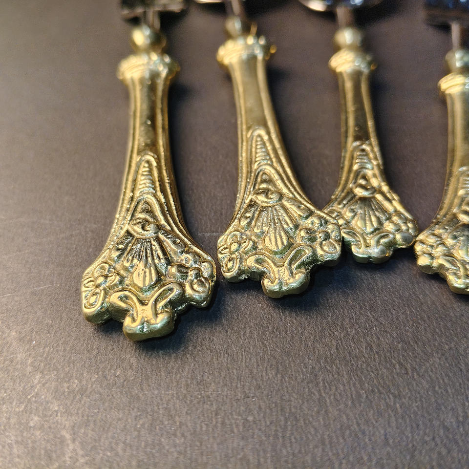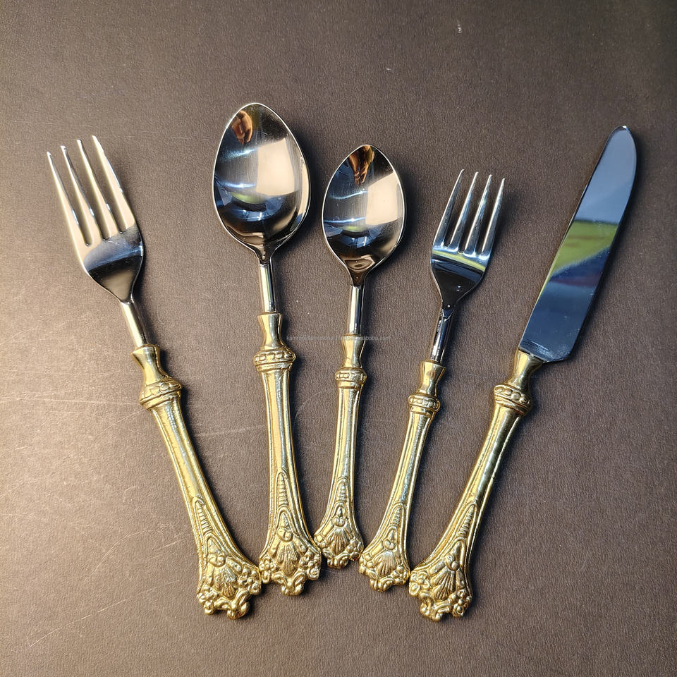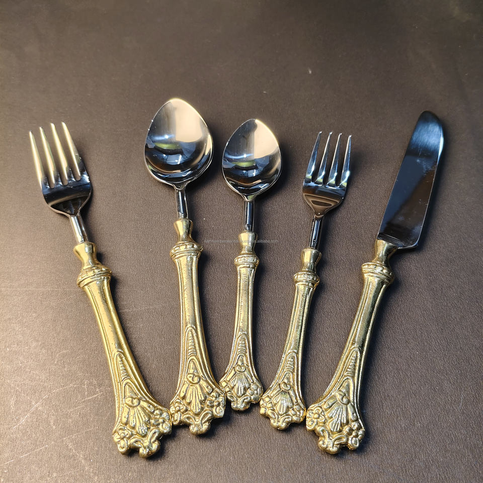 Juego de Cubiertos Victorianos con Relieve Dorado, Patrón Floral Intrincado, Mango de Latón con Cubiertos de Acero Inoxidable, Juego de Cubiertos de Lujo