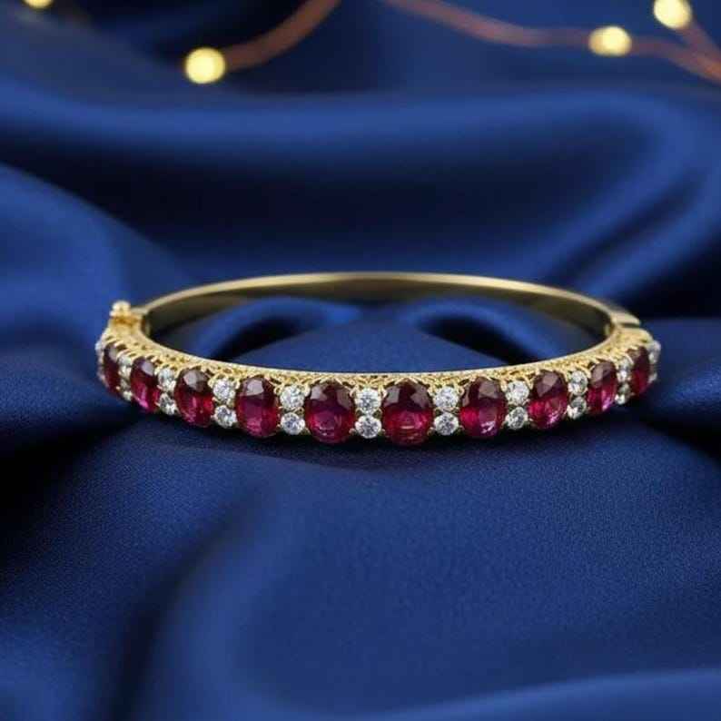 Brazalete victoriano con rubí rojo, plata de ley 925, chapado en oro de 14 quilates, hecho a mano, joyería antigua de lujo, regalo para ella