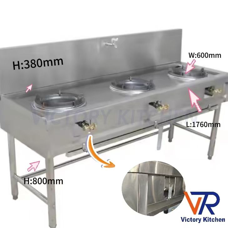 Victory Kitchen WKT Gama comercial de encimera de acero inoxidable de tres hornillas para equipo de soporte Mayalisa