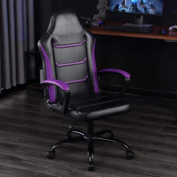 Silla de Oficina para Videojuegos con Altura Ajustable, Giratoria, de Cuero PU, con Ruedas y Brazos
