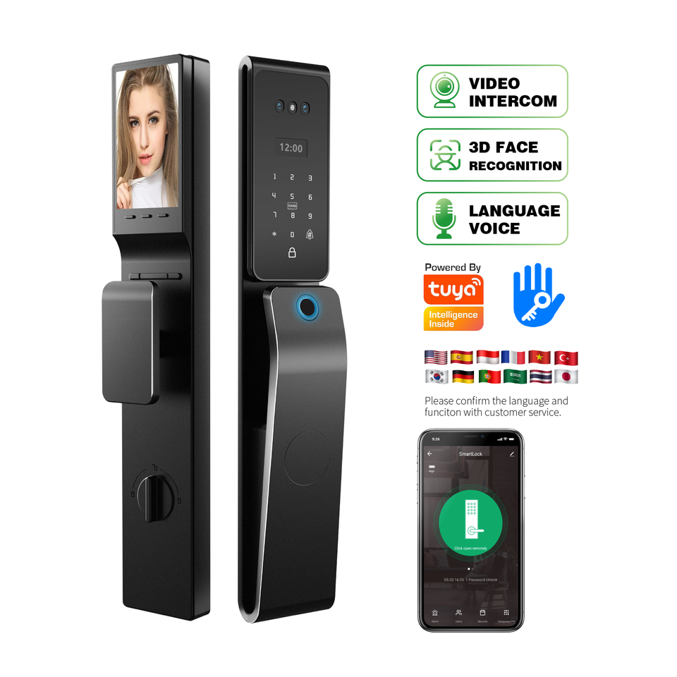 Videoportero con Reconocimiento Facial Automático, Huella Dactilar Biométrica, Cerradura Digital Tuya, Resistente al Agua, Aleación de Aluminio, WiFi, Nube
