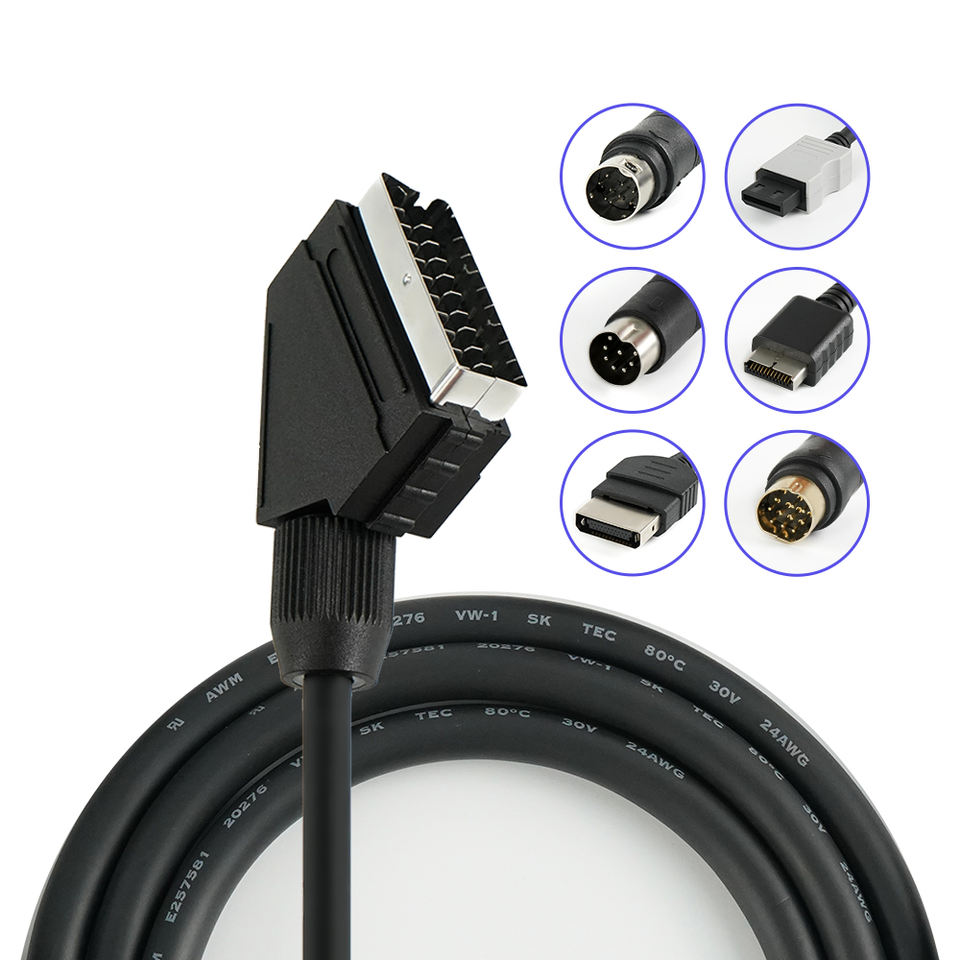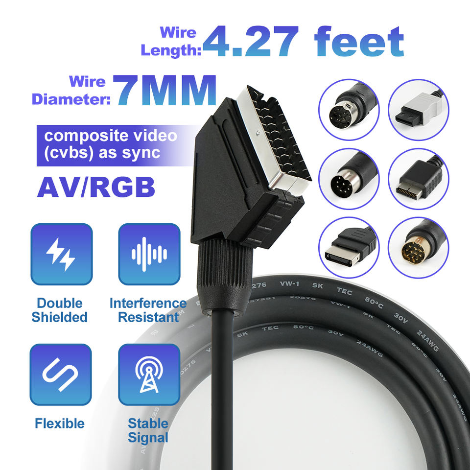 Cable de vídeo EU 1,3 m Video compuesto de alta calidad en SYNC RGB Scart Cable para consola de videojuegos Saturn/MD/Xbox/PS1/PS2/PS3