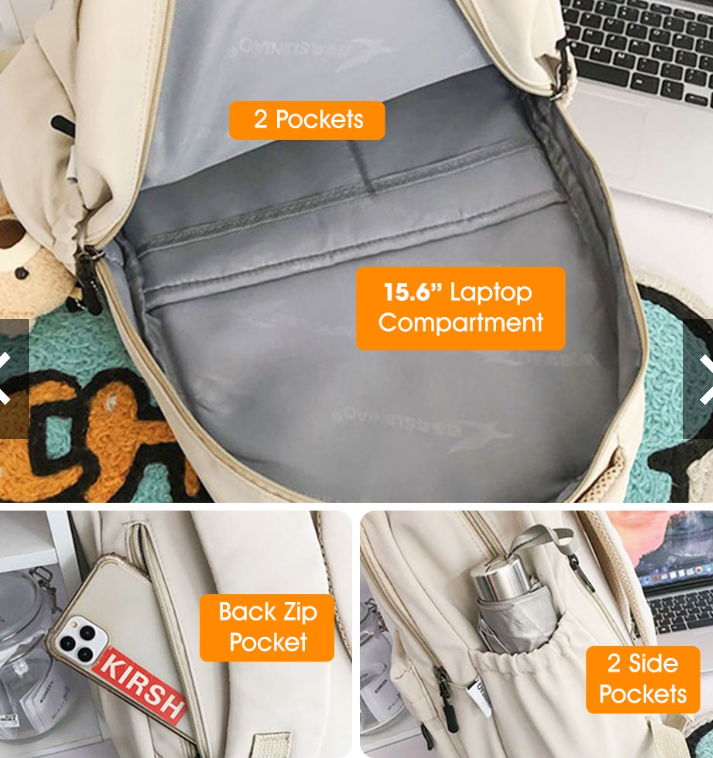 Compartimiento::4 zip compt + 1 compt portátil + 2 bolsillos interiores + 2 bolsillos laterales