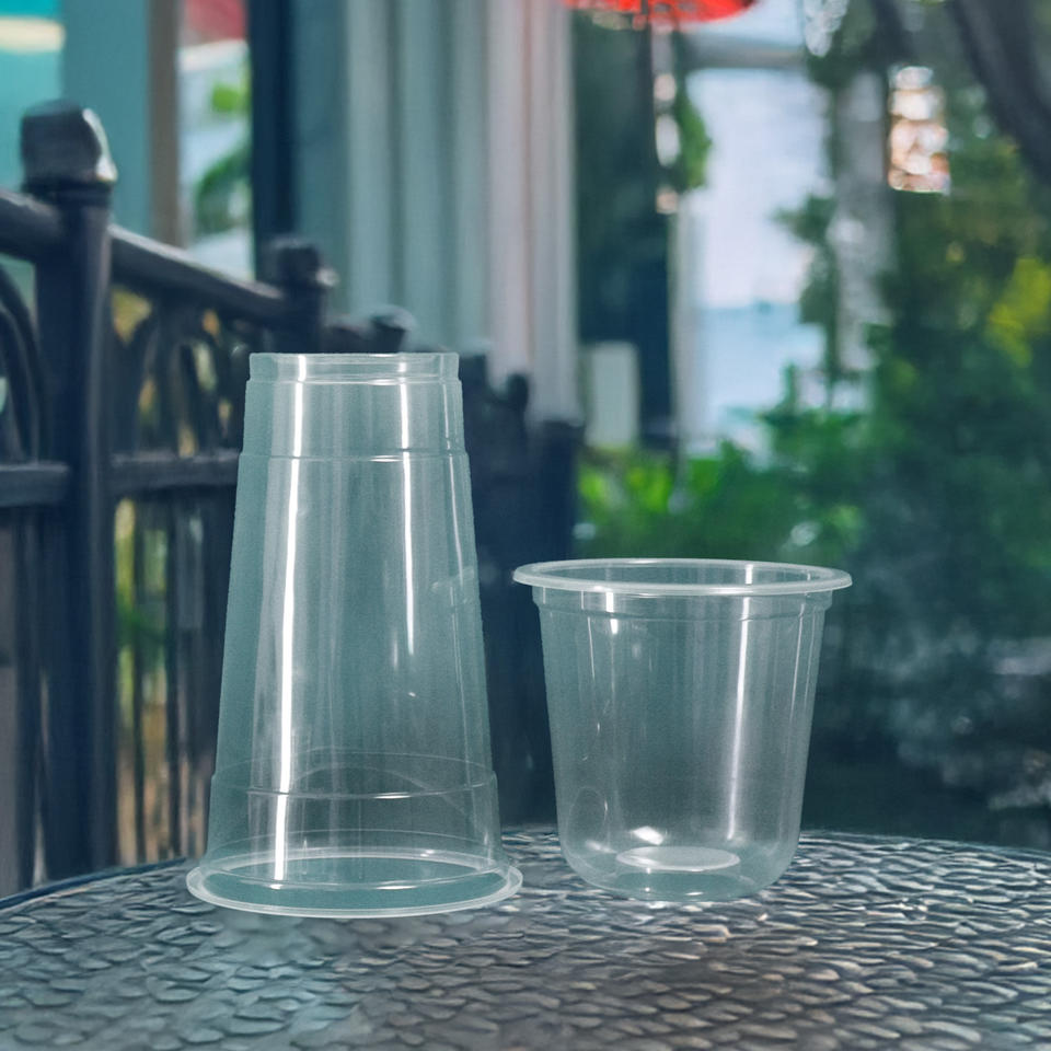 Los vasos de plástico transparente desechables más vendidos de Vietnam 95mm 12oz-24oz tapas de Material PP/PET para fiesta de café de pared única