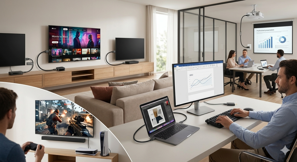 Televisores, monitores, proyectores, decodificadores, ordenadores, consolas de videojuegosAplicación