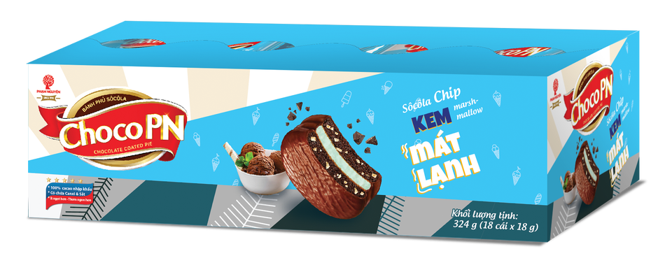 Galletas de Chocolate cremosas de Vietnam, bocadillos suaves y ricos, caja conveniente para morder pasteles, chips PN, galletas dulces recubiertas, malvavisco