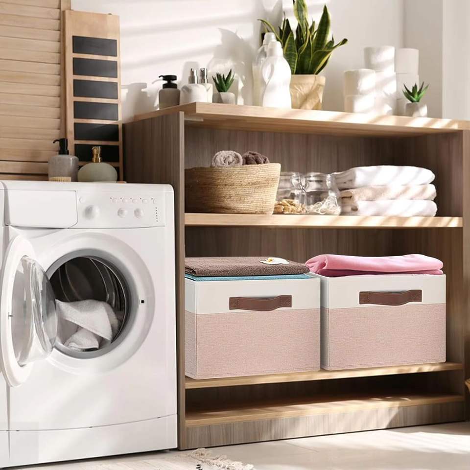 Cubos de almacenamiento de tela no tejida plegables personalizados de Vietnam con asas-Organizador cuadrado para armario, juguetes y ropa
