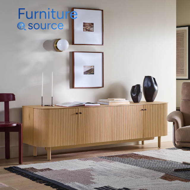Mesa de consola de madera personalizada de Vietnam Diseño estriado Esquinas redondeadas Aparador de buffet moderno para interiores de sala de estar Comedor
