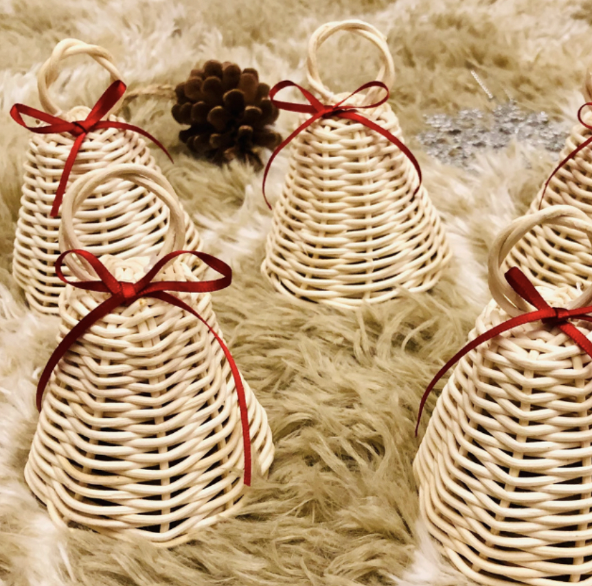 Conjunto de adornos navideños de mimbre rústico respetuoso con el medio ambiente de Vietnam, decoración de árbol artesanal hecha a mano para interiores de casas de vacaciones