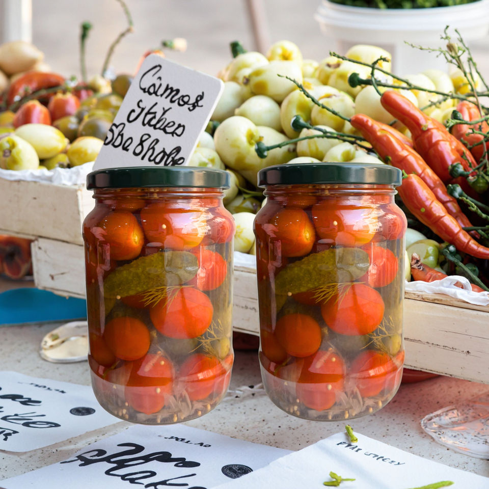 Contenido:Pepinos encurtidos y tomates en vinagre 720ml