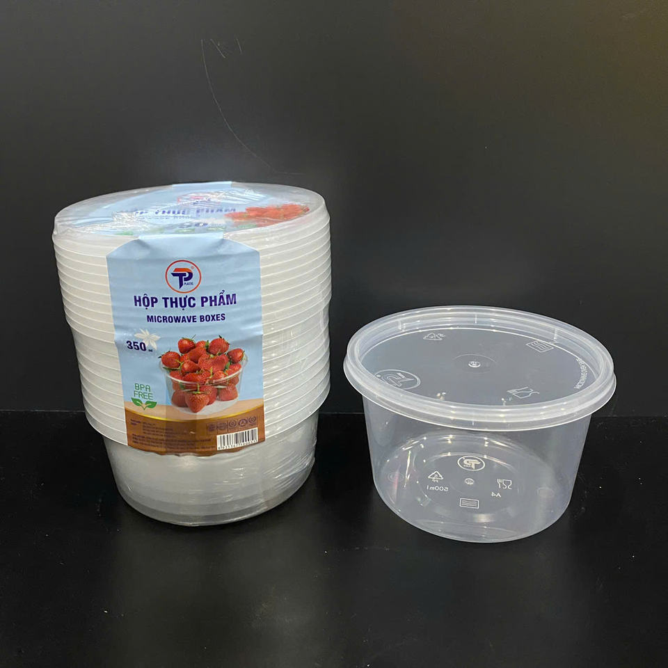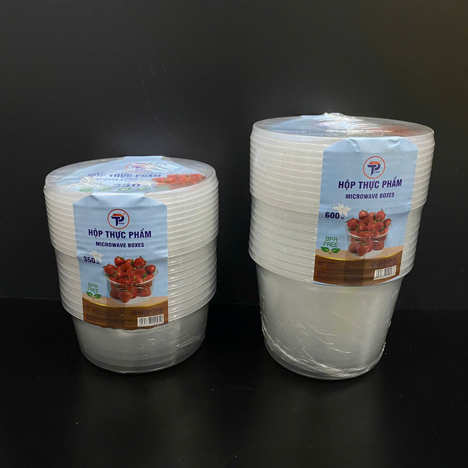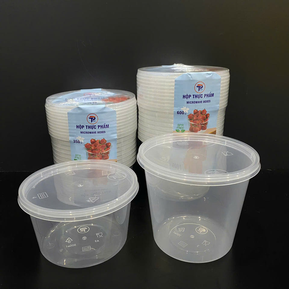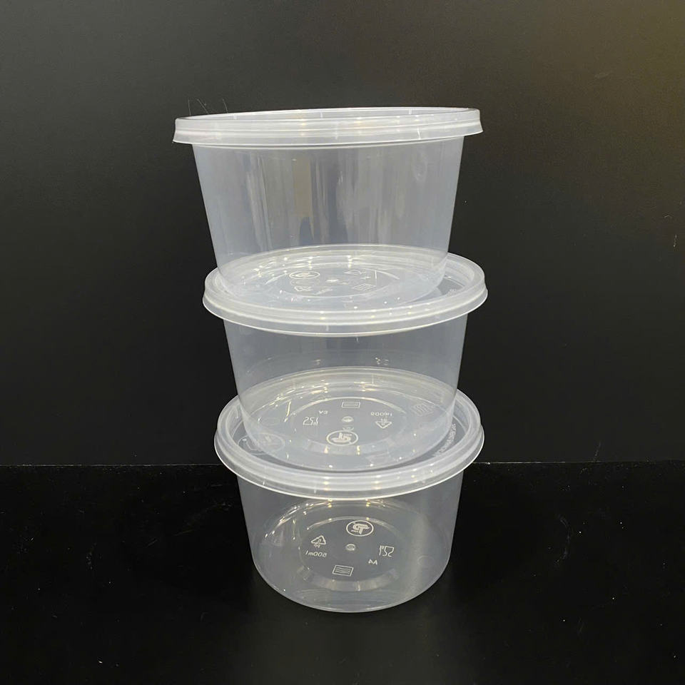 Contenedores de Plástico Redondos de 24oz para Alimentos, Fabricados en Vietnam, con Tapas, Transparentes, Aptos para Microondas