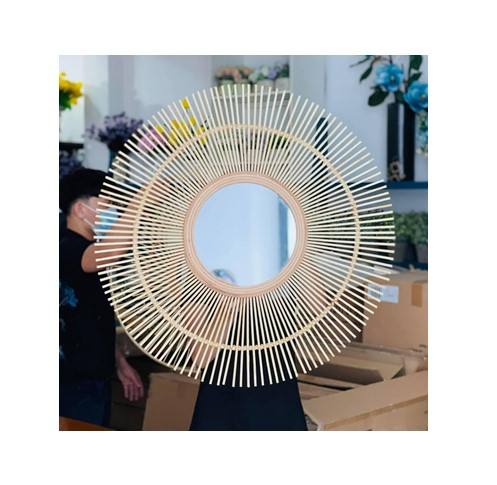 Espejo de mimbre natural de fábrica de Vietnam/muebles redondos de mimbre de ratán para decoración del hogar, sala de estar, spa, tienda de moda
