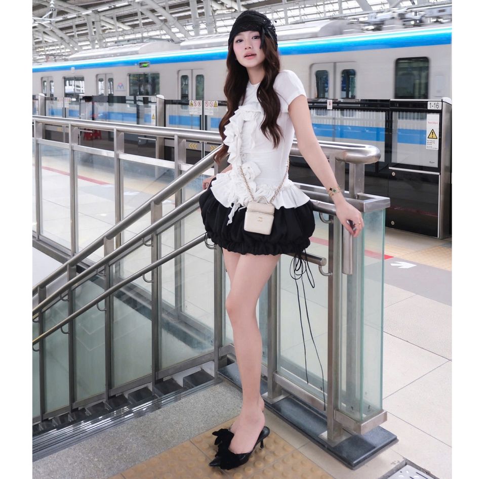 Material:Camiseta Bora, falda de seda acanalada y pantalones