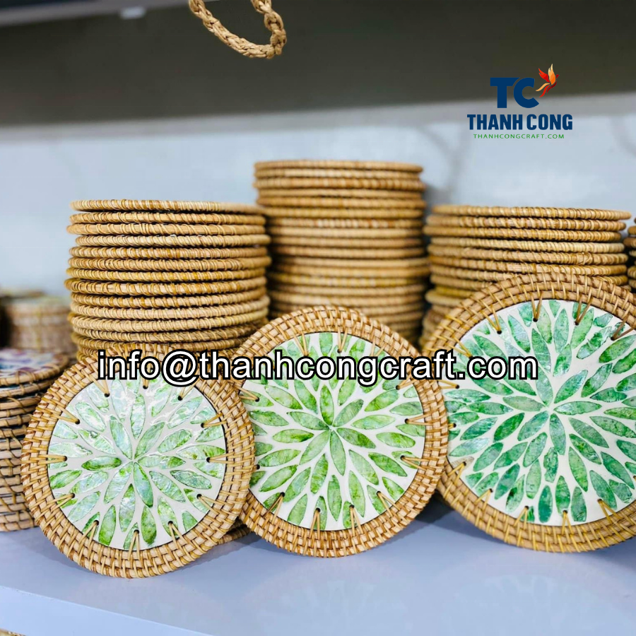 Posavasos de ratán hecho a mano de Vietnam y posavasos de nácar-Vendedor superior al por mayor directo personalizable