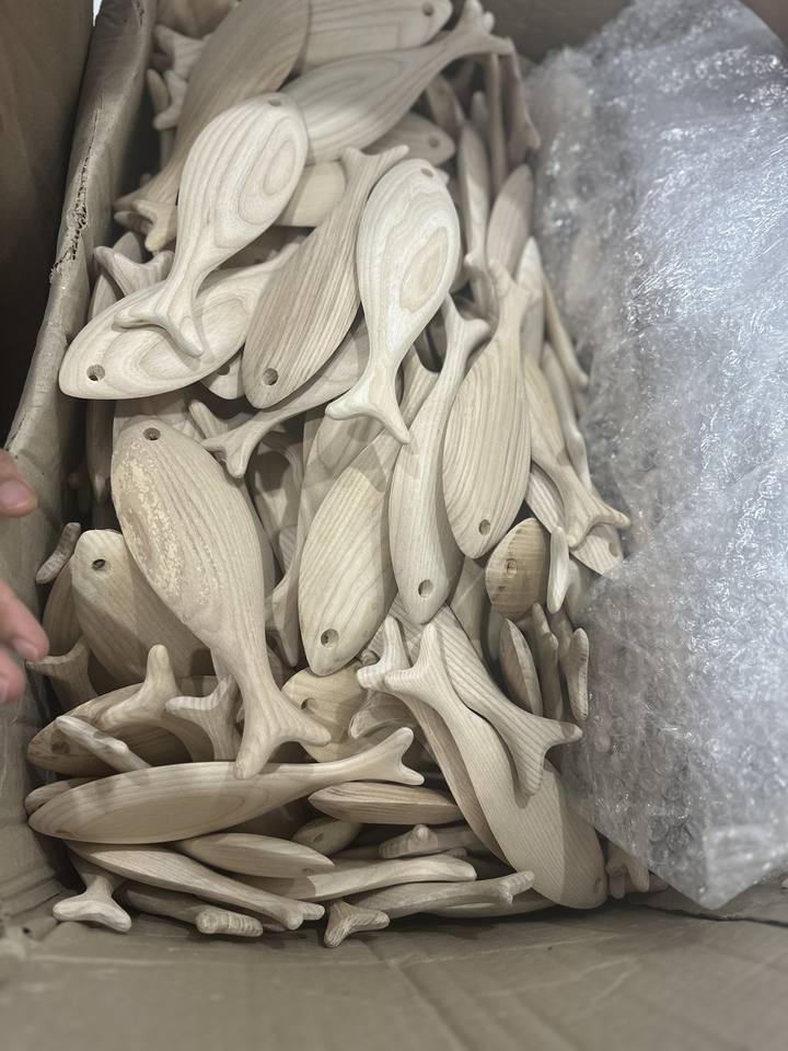 Pescado de madera hecho a mano de Vietnam disponible en varios tamaños para arte y uso interior