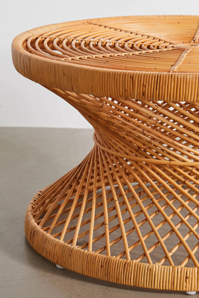 Mesa de centro de ratán hecha a mano de Vietnam mesa redonda de té orgánica con detalles de caña y base sólida para espacios habitables