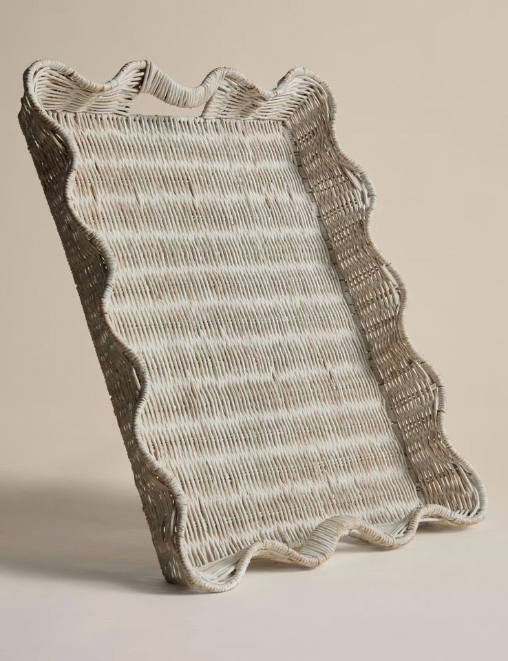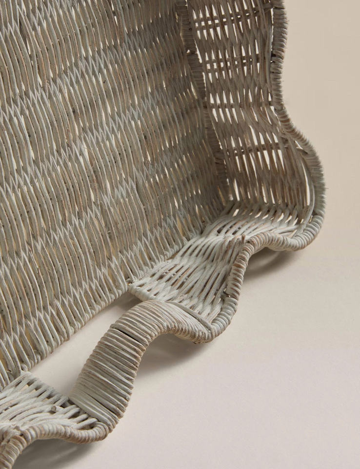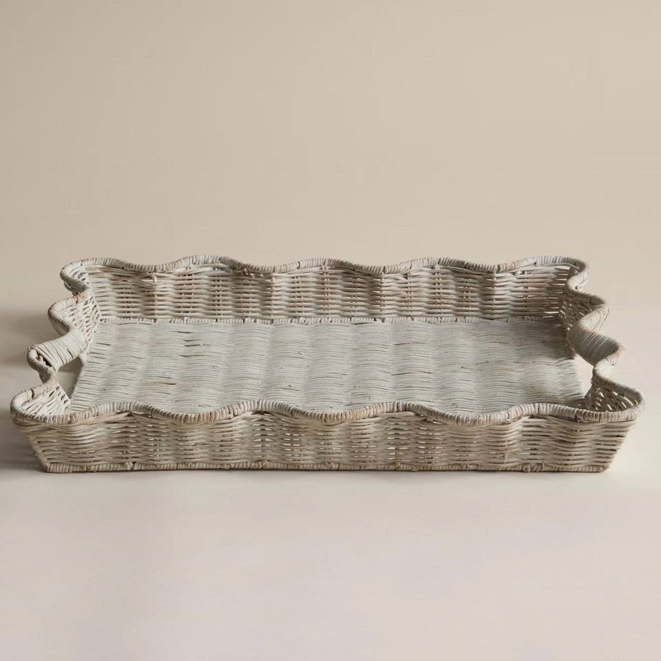 Bandeja de ratán hecha a mano en Vietnam, color blanquecino, bandeja rústica de mimbre para decoración de mesa y organización de almacenamiento