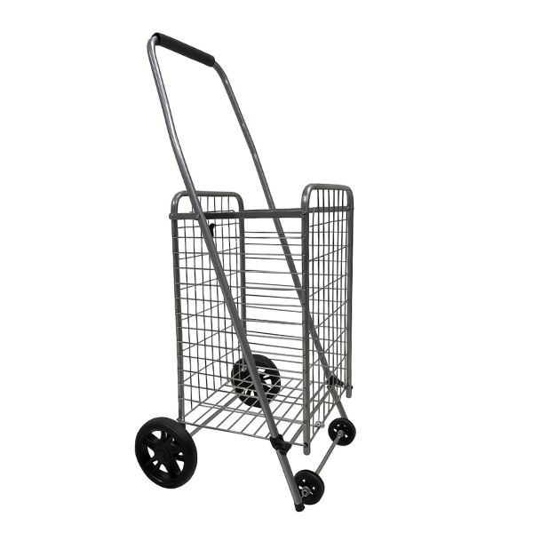 Carrito de compras plegable de venta de fábrica hecho en Vietnam con marco de hierro y mango de bucle para uso en tienda, carrito de compras pequeño